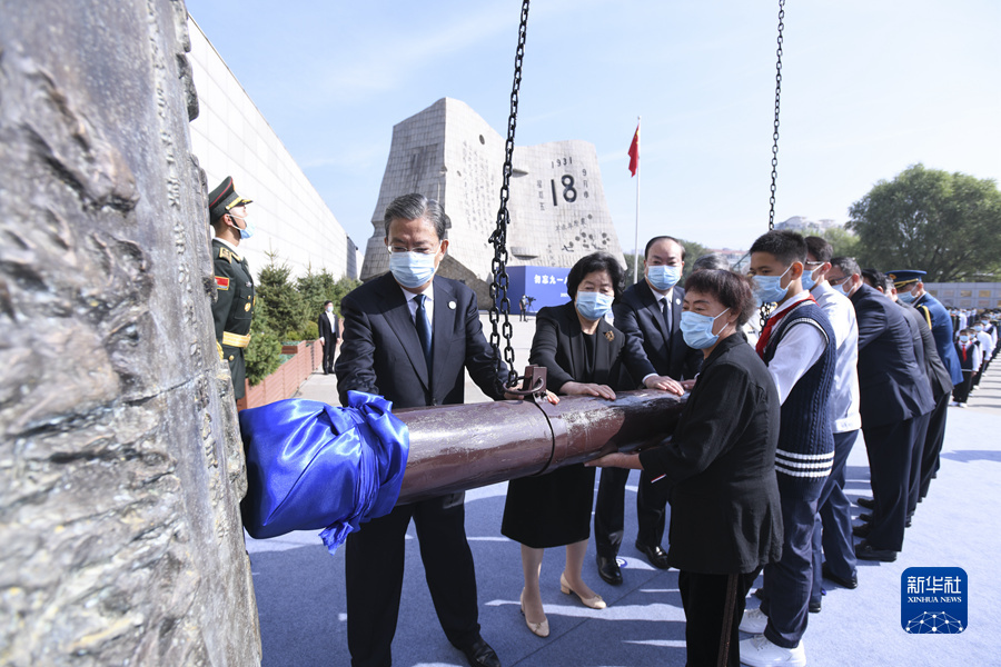 9時(shí)18分,趙樂(lè)際等領(lǐng)導(dǎo)同志和群眾代表神情凝重地推動(dòng)鐘槌擊響“警世鐘”。14響鐘聲,寓意著中國(guó)人民14年艱苦卓絕的抗戰(zhàn)歷程。沈陽(yáng)全城拉響防空警報(bào)。同一時(shí)間,遼寧省其余13個(gè)城市也拉響防空警報(bào)3分鐘,火車、輪船、汽車?guó)Q笛。