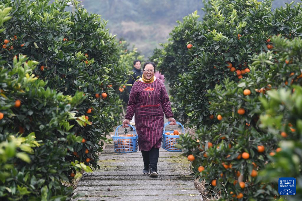 重慶市璧山區(qū)七塘鎮(zhèn)躍進村村民在提運剛采摘的血橙(2022年1月6日攝)。新華社記者 王全超 攝