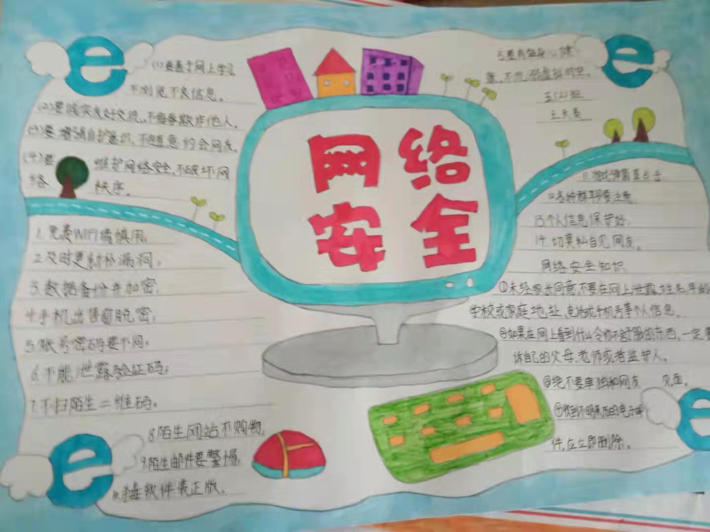第五,多種形式宣傳網(wǎng)絡(luò)安全知識。學(xué)校利用微信公眾號、學(xué)生手抄報等多種形式宣傳網(wǎng)絡(luò)安全知識。