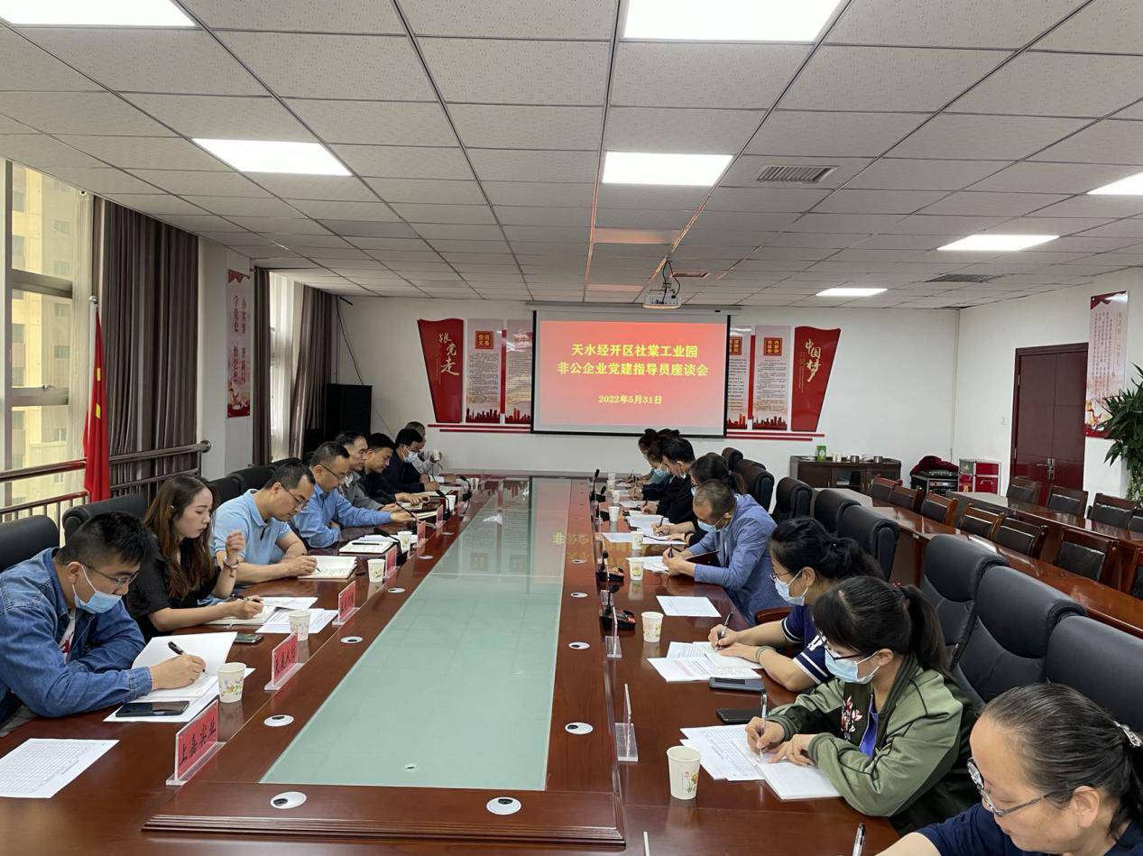 為深入推進(jìn)園區(qū)非公企業(yè)黨建工作,進(jìn)一步加強(qiáng)非公企業(yè)黨建指導(dǎo)員隊(duì)伍建設(shè),5月31日,天水經(jīng)開(kāi)區(qū)召開(kāi)社棠工業(yè)園非公企業(yè)黨建指導(dǎo)員座談會(huì),經(jīng)開(kāi)區(qū)非公黨建指導(dǎo)員、15家園區(qū)企業(yè)相關(guān)負(fù)責(zé)人參加了座談會(huì)。會(huì)議由經(jīng)開(kāi)區(qū)黨工委委員、紀(jì)檢監(jiān)察工委書記于愛(ài)平主持。