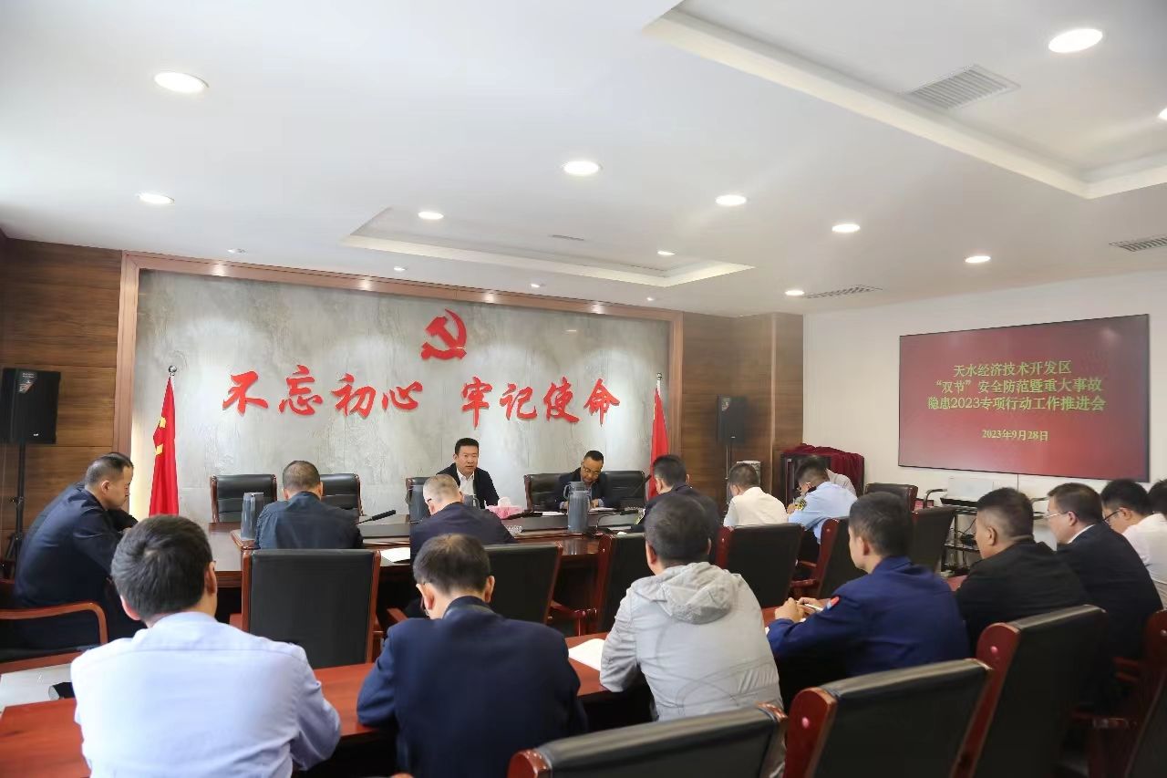 9月28日,天水經(jīng)開(kāi)區(qū)召開(kāi)“雙節(jié)”安全防范暨重大事故隱患專項(xiàng)排查整治行動(dòng)工作推進(jìn)會(huì)議。經(jīng)開(kāi)區(qū)管委會(huì)主任陳海龍主持會(huì)議并講話。