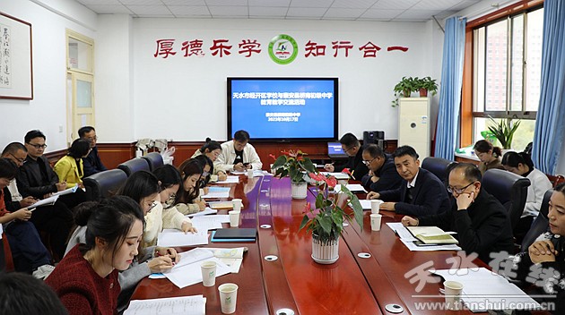 交流過程中,經(jīng)開區(qū)學校教師詳細了解了秦安縣橋南初級中學辦學歷史、基本情況、校園文化、辦學特色與辦學成效等。同時,全體交流活動參與教師深入七年級組各年級,開展了學科聽課、教研交流活動;顒幼詈,雙方單位負責人就辦學概況、管理模式、校園文化建設、亮點和成效等方面進行深入交流學習。