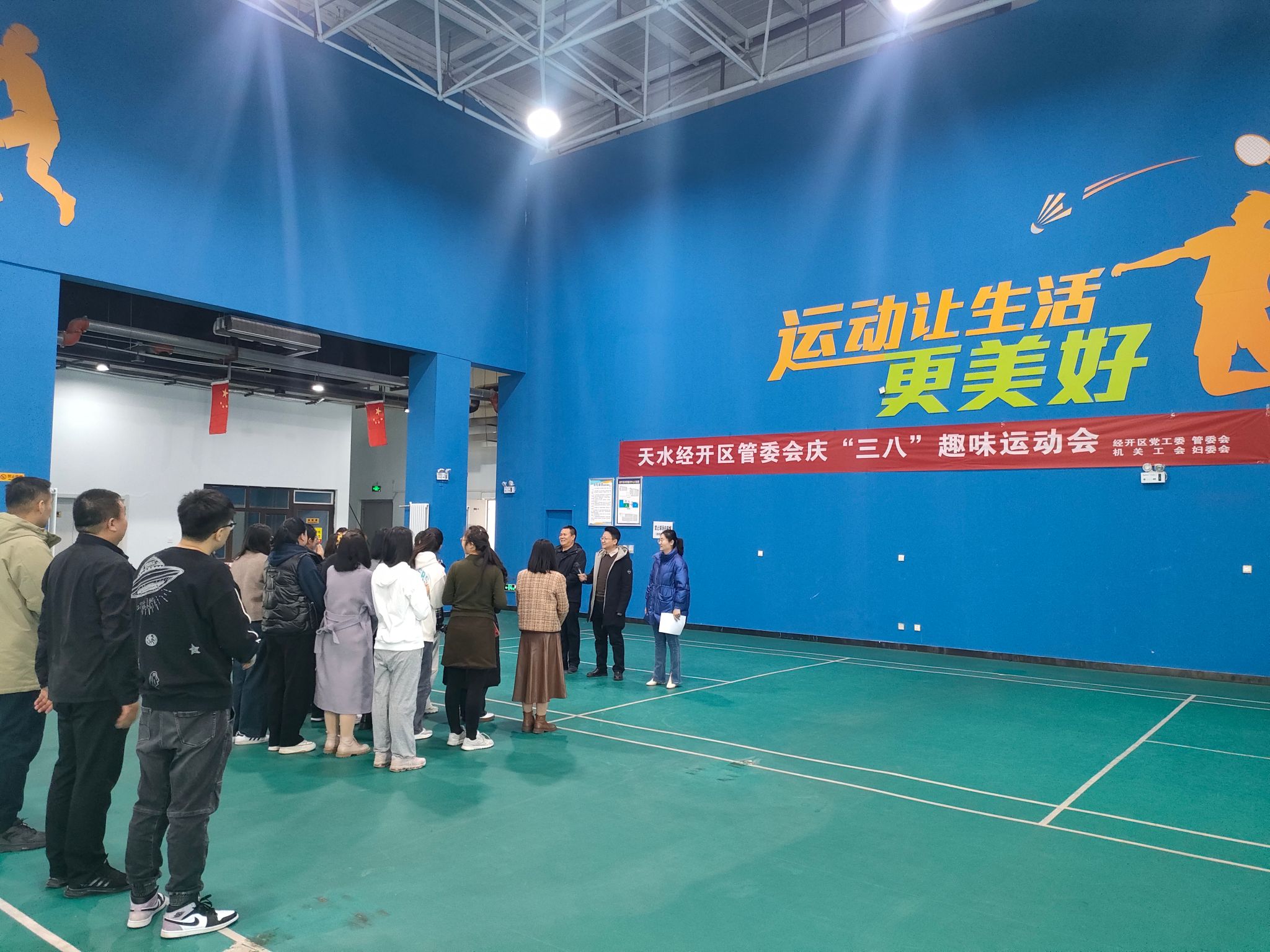 春和景明,萬(wàn)象更新。在第114個(gè)“三八”國(guó)際勞動(dòng)?jì)D女節(jié)來(lái)臨之際,為進(jìn)一步豐富女干部職工文化生活,營(yíng)造濃厚的節(jié)日氛圍,讓全體女職工度過(guò)一個(gè)健康、和諧、愉悅而有意義的節(jié)日,天水經(jīng)開(kāi)區(qū)黨工委、管委會(huì)、機(jī)關(guān)工會(huì)、婦委會(huì)聯(lián)合組織開(kāi)展了“慶三八”趣味運(yùn)動(dòng)會(huì)。管委會(huì)機(jī)關(guān)、財(cái)政局、政務(wù)服務(wù)中心全體女干部職工共50余人參加。