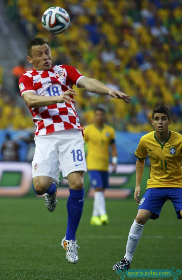 第36分鐘,巴西前場反搶,奧斯卡右路低平球傳中,莫德里奇及時回防,搶在保利尼奧之前將球解圍。第41分鐘,拉基蒂奇禁區(qū)前沿對內(nèi)馬爾犯規(guī),也領到一張黃牌。克羅地亞人墻后退距離不夠,西村雄一使用噴霧劑劃線。內(nèi)馬爾的任意球打在人墻中拉基蒂奇的頭上彈出底線。第44分鐘,內(nèi)馬爾腳后跟妙傳,浩克的左腳兜射偏出。半場結(jié)束,兩隊暫時1-1握手言和。
