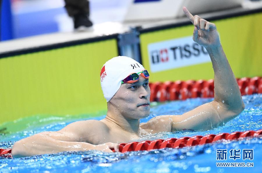 8月21日,中國(guó)選手孫楊在比賽后慶祝。新華社記者李響攝