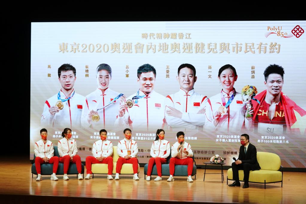 5日的香港理工大學(xué)賽馬會綜藝館內(nèi)掌聲陣陣,笑聲連連。蘇炳添、馬龍、孫一文、呂小軍、崔曉桐、王愛民六名內(nèi)地奧運(yùn)健兒訪港代表團(tuán)成員來到這里,為香港市民進(jìn)行了一場別開生面的報(bào)告會。他們正能量的鼓勵給聽眾們送上了一碗碗“心靈雞湯”,而風(fēng)趣的語言風(fēng)格讓這場報(bào)告會又酷似一場脫口秀。