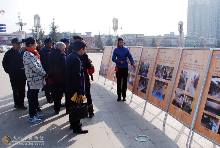 活動當日,在甘谷縣政府廣場,大家不畏春寒,立即投入到緊張的工作狀態(tài)之中,講解員則依托展板內容,熱情的為大家介紹宣傳天水民俗博物館的歷史、文化和古民居知識,之后向社區(qū)居民發(fā)放免費參觀券500張,博物館簡介100份,吉祥物50個,并向群眾分發(fā)民俗館宣傳折頁100份。