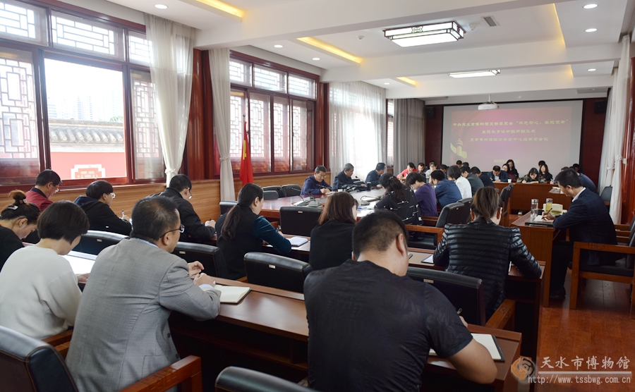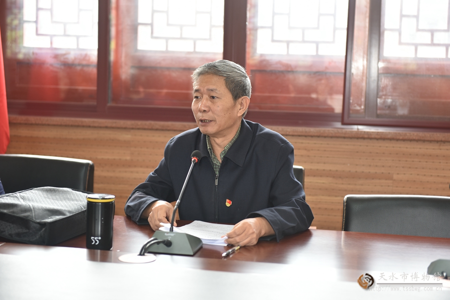 9月16日上午,天水市博物館黨支部“不忘初心、牢記使命”主題教育讀書班暨市博物館理論學(xué)習(xí)中心組學(xué)習(xí)會議在暢和軒開班,市博物館黨支部書記、館長李寧民主持會議并講話,黨支部成員副館長管玉、汪保全,各部室負(fù)責(zé)人及科級干部,全體黨員等參加會議。