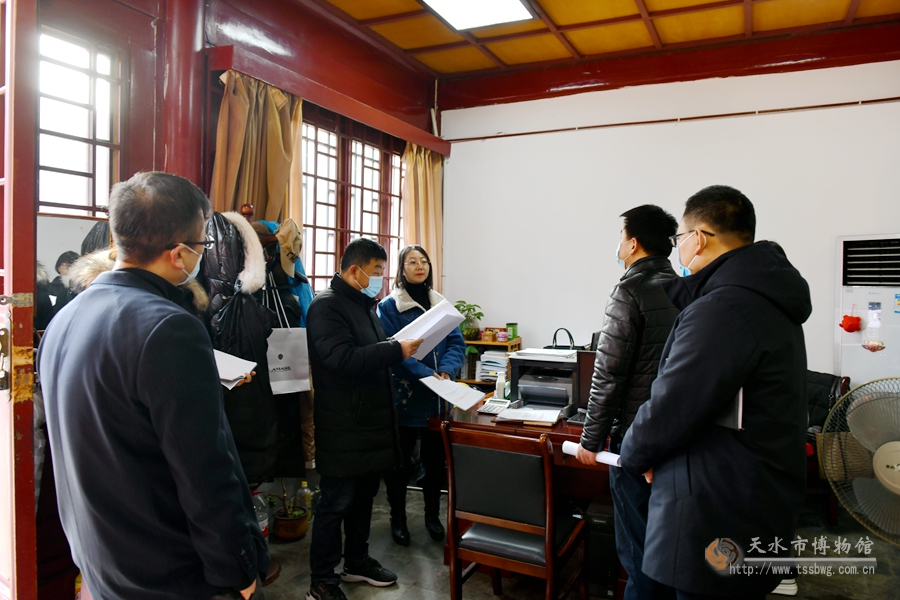 檢查組一行實地查看了文物庫房、修復(fù)中心、伏羲廟和胡氏民居古建筑等重點部位安全情況,重點對溫濕度、消防、安防、電氣等設(shè)施設(shè)備和運行情況進(jìn)行了檢查,并聽取部室安全工作情況匯報,查閱了相關(guān)周檢查記錄、會議記錄、制度、操作規(guī)程等安全文檔資料。