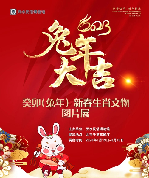 為了喜迎癸卯兔年,營(yíng)造濃厚的文化氛圍,天水民俗博物館結(jié)合聯(lián)展內(nèi)容,從中擇選出一部分具有民俗文化特色的生肖內(nèi)容,同時(shí)也融入了天水市博物館館藏文物、胡氏古民居建筑彩繪、十二生肖香包等文化元素。內(nèi)容共分生肖信仰、十二瑞獸、相伴西行、瑞兔有靈、仙兔呈祥、繪兔逸趣、嫦娥奔月、避邪迎神、肖兔藝術(shù)九個(gè)單元,與古建筑相互映襯、相得益彰,烘托出濃濃的中國(guó)年味。在弘揚(yáng)優(yōu)秀傳統(tǒng)文化的同時(shí),也為大家送上新春的祝福。