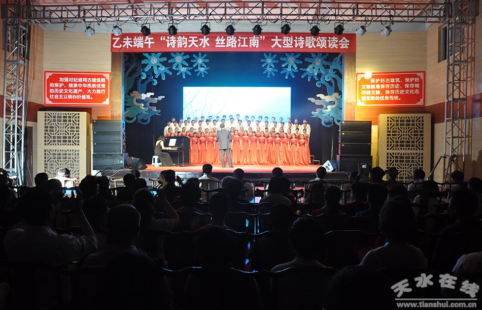 在端午節(jié)來臨之際,6月19日晚上,由天水市文化和旅游局、天水師范學(xué)院主辦的乙未端午“詩韻天水 絲路江南”大型詩歌誦讀會在天水市文化館傾情上演。天水市委常委、組織部長王光慶,市委常委、宣傳部長王正茂,副市長霍衛(wèi)平等觀看了演出。