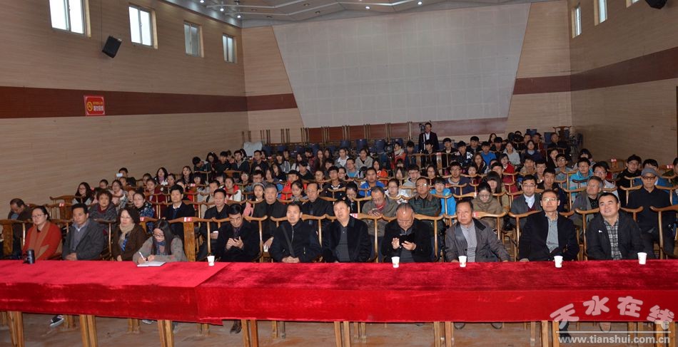 11月4日上午,由天水市文化館主辦的天水文化大講堂--第三講在市文化館文藝廳精彩開講。這次“文化大講堂”特別邀請到甘肅省文化廳副廳長周奉真先生,他主講了“中國傳統(tǒng)文化精華與現(xiàn)代價值建設(shè)”。市文化和旅游局局長仙松濤、副局長尚建強,天水日報副總編王若冰, 天水民俗專家李子偉,天水書畫界知名人士、學(xué)者,天水師院美術(shù)學(xué)院師生、媒體記者及社會人士近200人聆聽了講座。