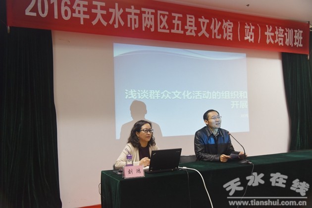 11月17日,由天水市文化和旅游局指導(dǎo)、天水市文化館主辦的“2016年天水市兩區(qū)五縣文化館長及文化站長培訓(xùn)在金龍大酒店4樓會(huì)議室繼續(xù)舉行,市文化館特別邀請到甘肅省文化館調(diào)研編輯部主任劉鴻女士,她主講了《群眾文化活動(dòng)的組織與開展,鄉(xiāng)鎮(zhèn)文化專干的素質(zhì)漫談》的公共文化講座,各縣區(qū)文化館館長、鄉(xiāng)鎮(zhèn)文化站站長、鄉(xiāng)鎮(zhèn)文化專干近120余人聆聽講座。