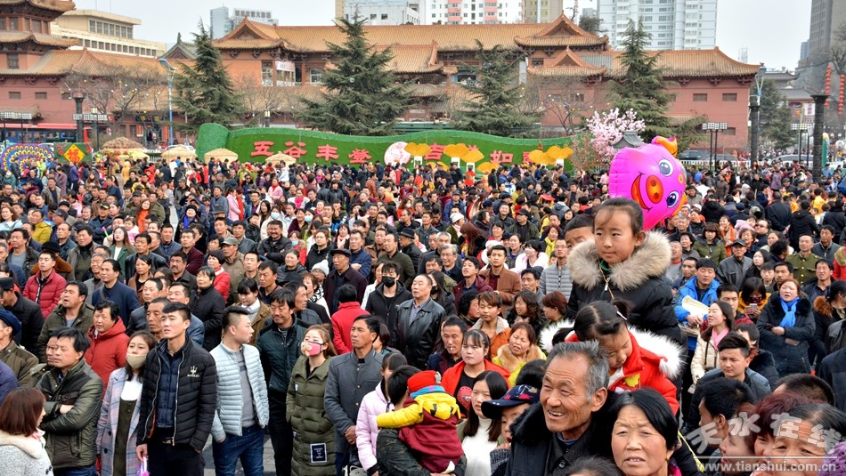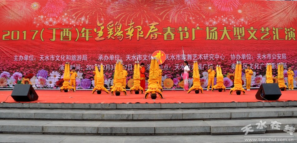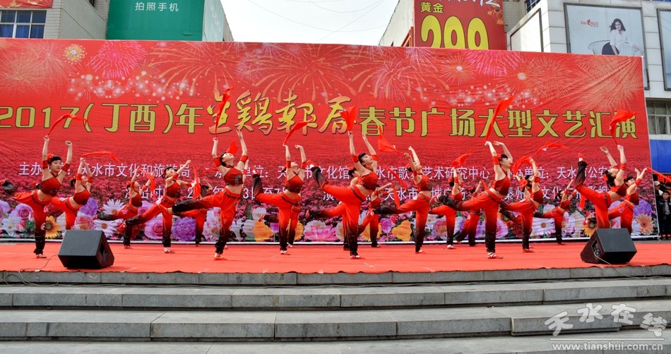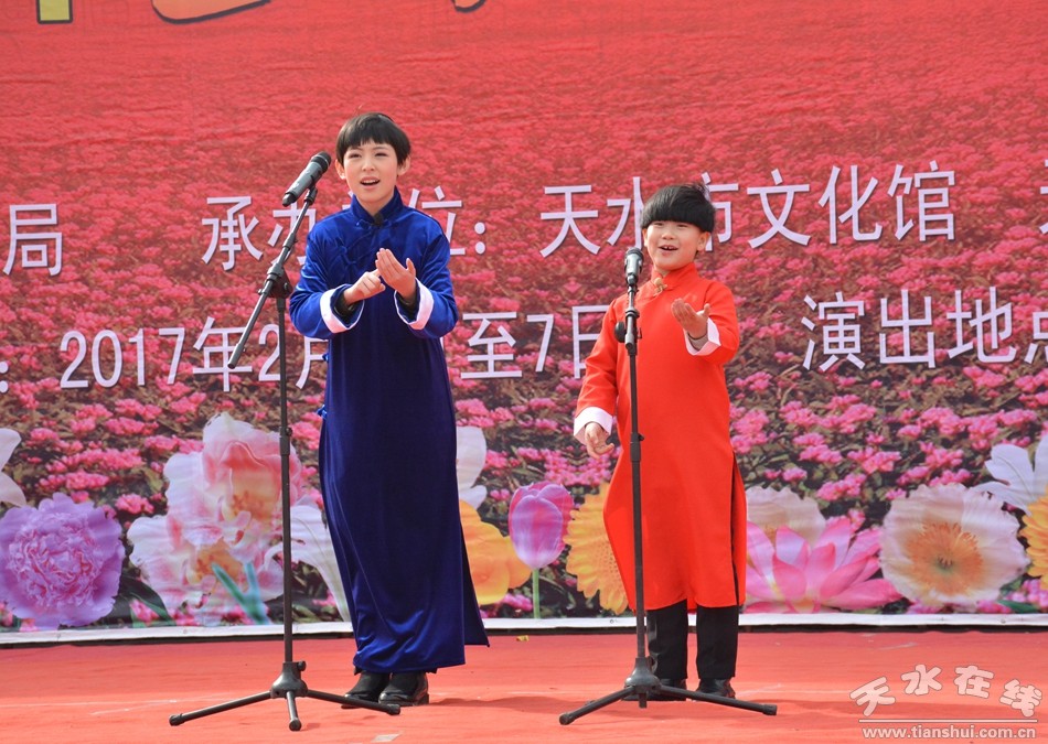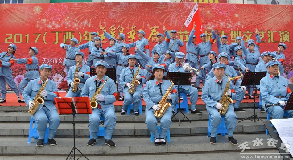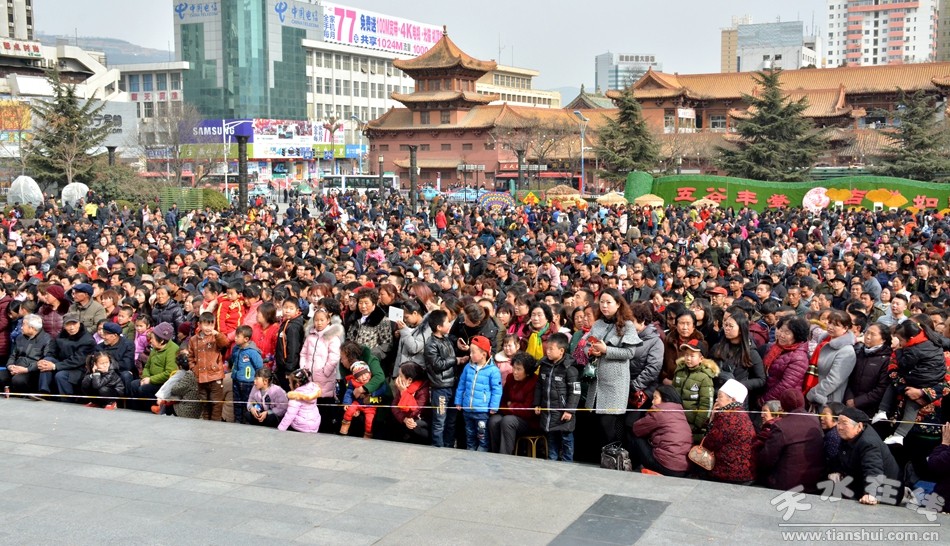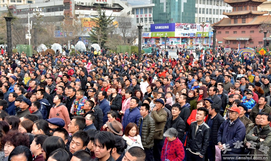 2月5日(正月初九),天水市2017年春節(jié)廣場大型文化惠民演出進行到第三場,天公作美,連日春陽乍暖。來自天水市各個群眾文藝團體的演員們雖然身著單薄的演出服,但并不覺得冷,個個精神飽滿。而廣大的觀眾們?yōu)榱擞^看節(jié)目,早早地來到龍城廣場,提前占據(jù)了最佳的觀看位置等候演出開始。