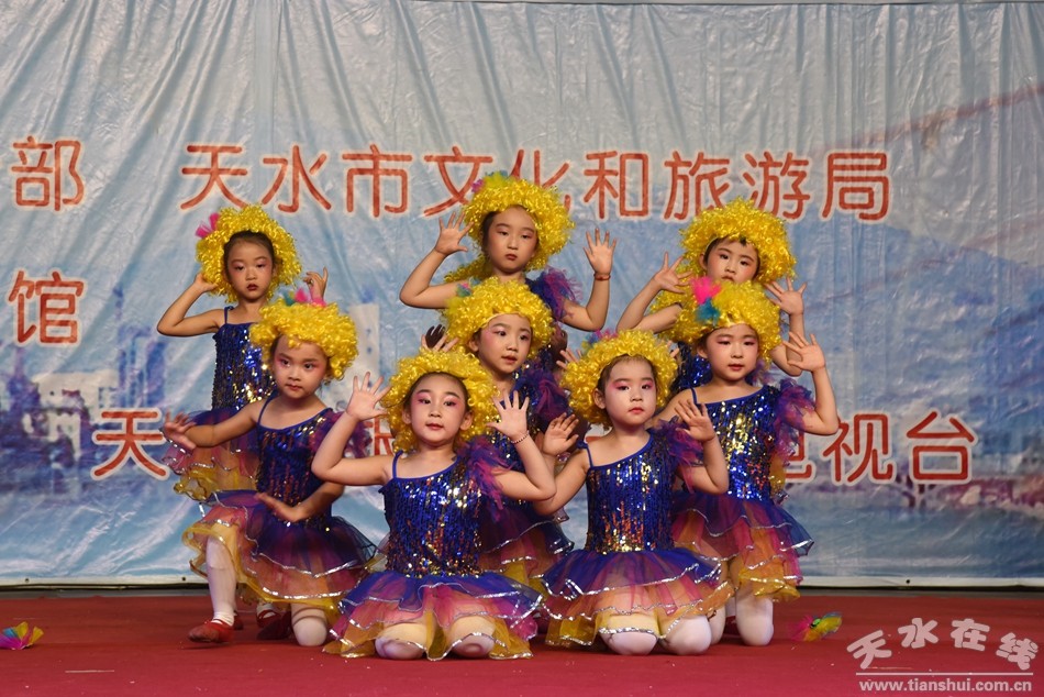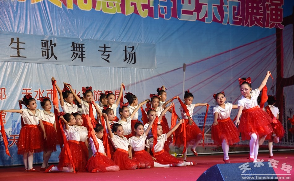 本次活動的主題為“引領(lǐng)廣場文化,普及全民藝術(shù)”。天水市紅舞鞋藝術(shù)團表演的開場舞《和諧陽光》拉開了本場演出的序幕。舞蹈《和諧陽光》、《苗妹妹》、《快樂芭比》、《月愿》、《小鴨子的夢》、《時刻準備》、《快樂的小羊》、《石榴紅了》、《俏蘭花》、《嗨!小可愛》、《大山的孩子》、《五彩的夢》、《小辮子甩三甩》、《柳絲》、《幸福像花一樣》,以及獨唱楊雅婷、伴舞婉春舞蹈學(xué)校的《山花爛漫》等十六個學(xué)生歌舞類節(jié)目相繼精彩亮相。小演員們精神飽滿,激情昂揚,現(xiàn)場舞姿曼妙,場面恢宏,氣氛歡快,將本次演出推向了高潮。