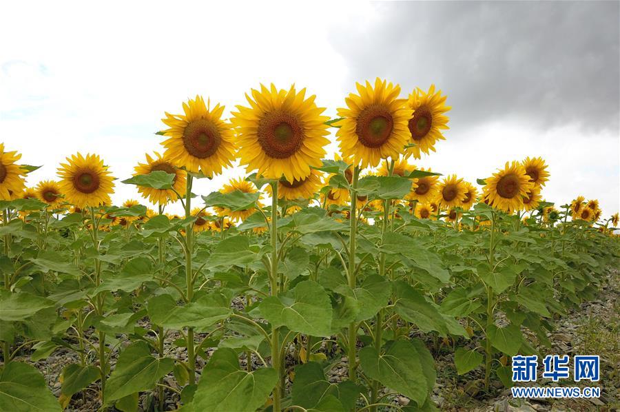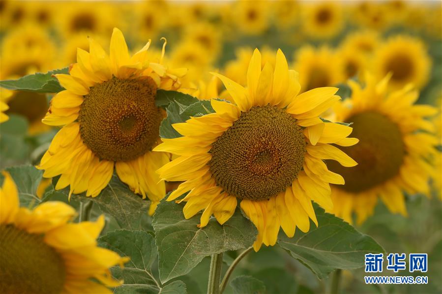 這是在甘肅省白銀市景泰縣寺灘鄉(xiāng)拍攝的向日葵花海(8月13日攝)。