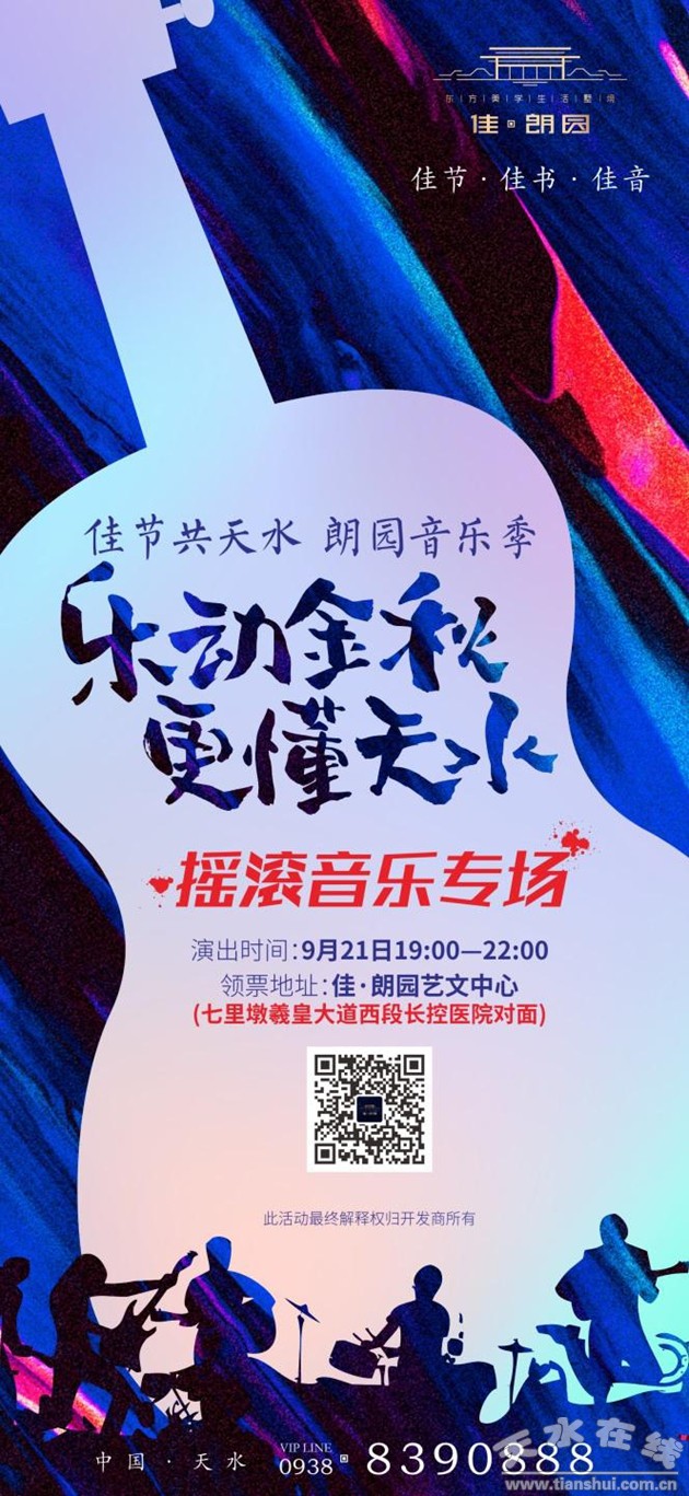 佳·朗園搖滾之夜專場9月21日19:00震撼啟幕,恭迎蒞臨,領票地址:佳·朗園藝文中心(七里墩羲皇大道長控醫(yī)院對面),詳情咨詢0938-8390888。流金歲月·民謠頌歌·天水佳音等音樂專場,敬請持續(xù)關注公眾號。