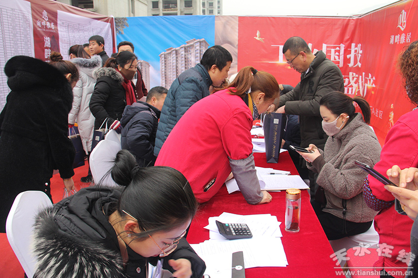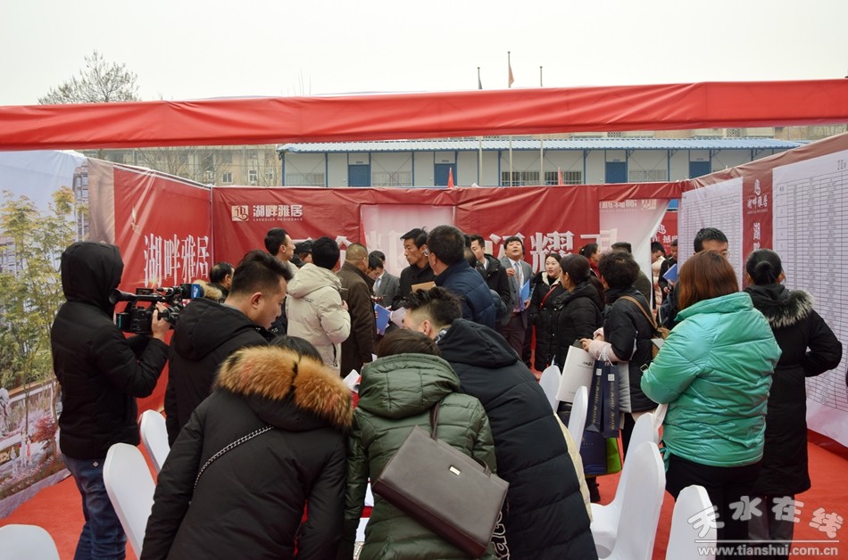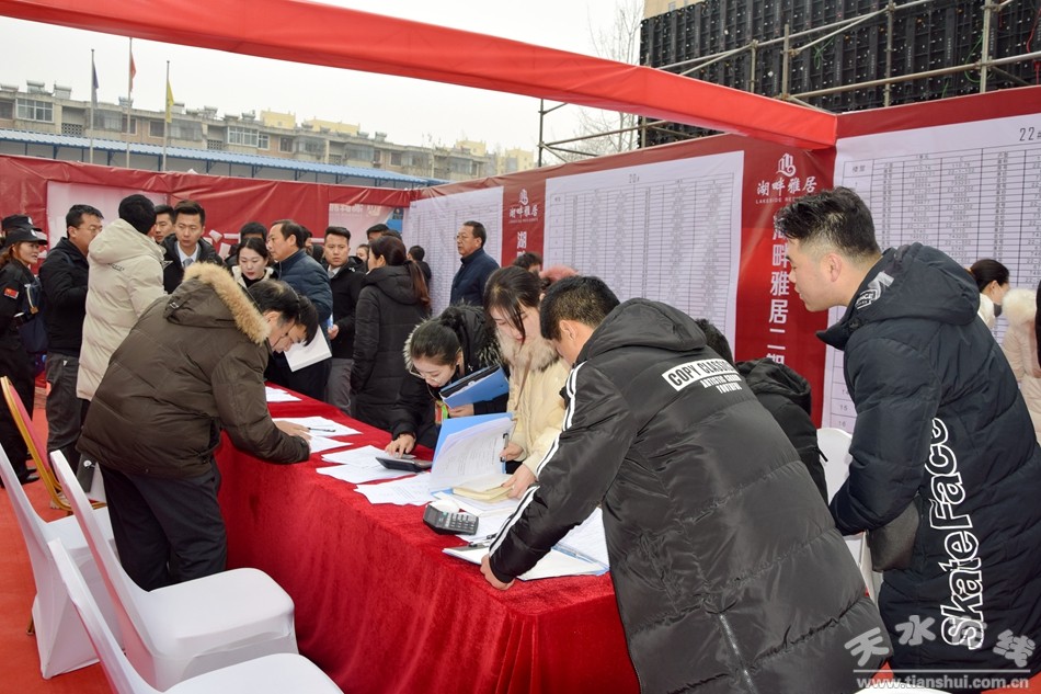 1月12日湖畔雅居二期開盤活動現(xiàn)場人聲鼎沸,熱鬧非凡。上午9:00簽到正式開始,到訪的準(zhǔn)業(yè)主已排起的長隊,等候區(qū)已人山人海。熱烈的氛圍感染著在場的每一位購房者,將冬日的湖畔雅居渲染得猶如盛夏般熱烈。