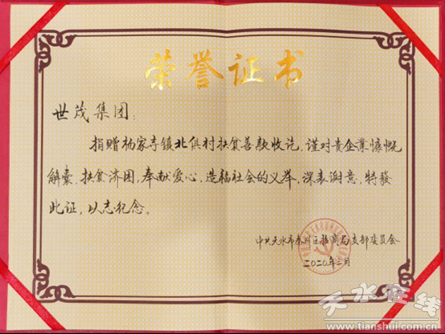 世茂地產(chǎn)首次入駐天水,立足秦州區(qū),致力拓展城市發(fā)展建設(shè),為天水開創(chuàng)全新品質(zhì)生活的同時(shí),秉持集團(tuán)社會(huì)公益事業(yè)責(zé)任初心,攜手天水市政府共同推進(jìn)秦州區(qū)楊家寺鎮(zhèn)“脫貧”事業(yè)的建設(shè)與發(fā)展。2020年3月,世茂地產(chǎn)為楊家寺鎮(zhèn)北俱村捐助扶貧善款,為楊家寺鎮(zhèn)最后的“脫貧”攻堅(jiān)沖刺貢獻(xiàn)自己的一份力量,希望能夠幫助更多的人從“困境”中走出來,站起來,早日實(shí)現(xiàn)楊家寺鎮(zhèn)的產(chǎn)業(yè)振興、產(chǎn)業(yè)富民、產(chǎn)業(yè)脫貧,激活鄉(xiāng)鎮(zhèn)扶貧的“自我造血”功能,不斷增強(qiáng)群眾的幸福感與獲得感。希望通過我們大家的力量,共同讓秦州、讓天水繁榮昌盛。