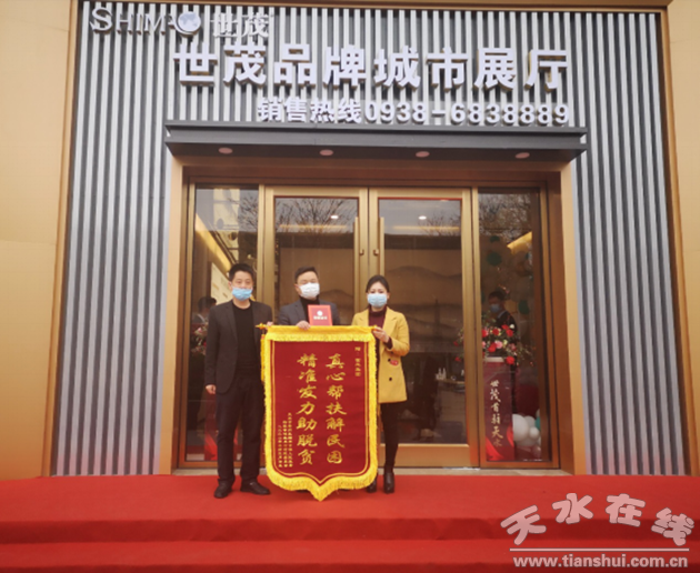 近日,為感謝世茂對(duì)“扶貧”事業(yè)的作出的努力與貢獻(xiàn),中共天水市秦州區(qū)招商局支部委員會(huì)的工作人員來到了世茂品牌城市展廳,代表秦州區(qū)楊家寺鎮(zhèn)人民政府,授予“扶貧”感謝錦旗與榮譽(yù)證書。這對(duì)世茂而言,不僅僅只是一份榮譽(yù),更是對(duì)世茂的認(rèn)可與支持。