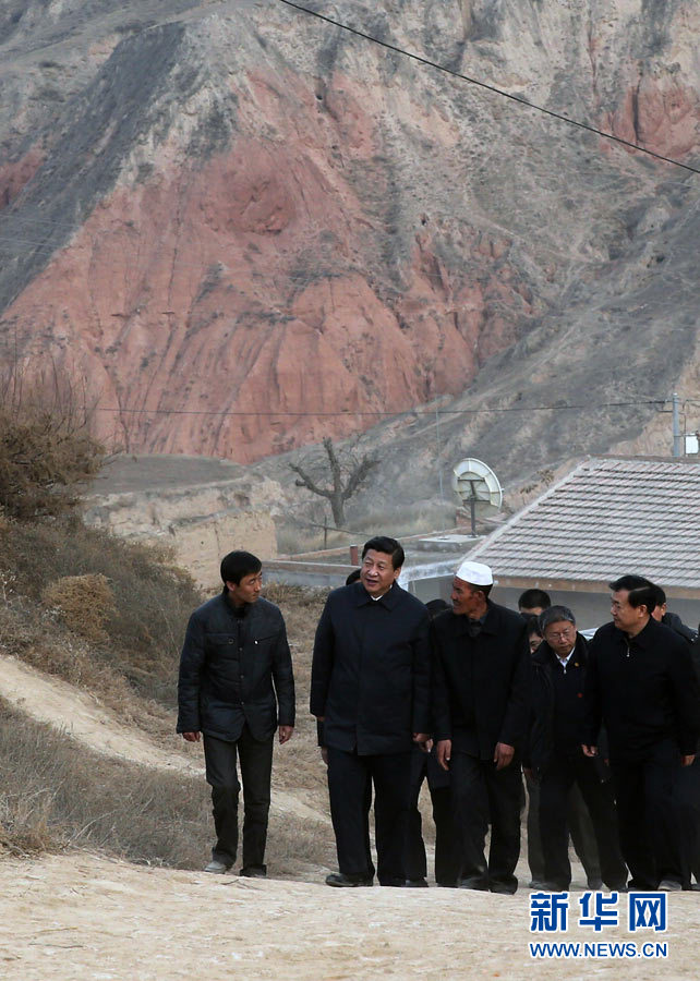 (2月3日,習(xí)近平在東鄉(xiāng)族自治縣布愣溝村看望鄉(xiāng)親們。 新華社記者蘭紅光攝 )