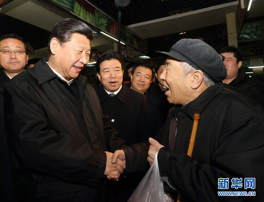 ( 2月4日,習(xí)近平在蘭州市城關(guān)區(qū)五泉菜市場(chǎng)考察時(shí)與前來(lái)買(mǎi)菜的居民親切交談。 )