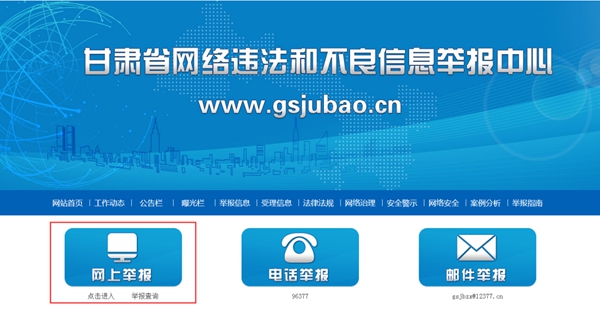 甘肅省網(wǎng)絡(luò)違法和不良信息舉報(bào)中心網(wǎng)站首頁(yè)