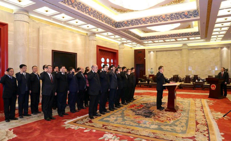 宣誓后,監(jiān)誓人要求大家全面貫徹習(xí)近平新時(shí)代中國(guó)特色社會(huì)主義思想和黨的十九大精神,堅(jiān)決維護(hù)習(xí)近平總書記全黨的核心、黨中央的核心地位,堅(jiān)決維護(hù)黨中央權(quán)威和集中統(tǒng)一領(lǐng)導(dǎo)。永遠(yuǎn)銘記誓言,時(shí)刻不忘初心,切實(shí)履行承諾,實(shí)干擔(dān)當(dāng)、清廉自守,勤勉盡責(zé)做好本職工作。始終忠于憲法,履行憲法使命,維護(hù)憲法權(quán)威,依憲施政,依法行政,不斷提高運(yùn)用法治思維和法治方式解決問(wèn)題的能力,為加快建設(shè)經(jīng)濟(jì)發(fā)展、山川秀美、民族團(tuán)結(jié)、社會(huì)和諧的幸福美好新甘肅作出新的更大貢獻(xiàn)!