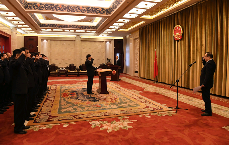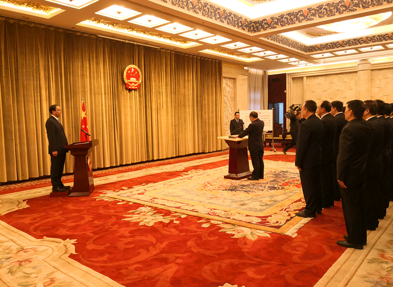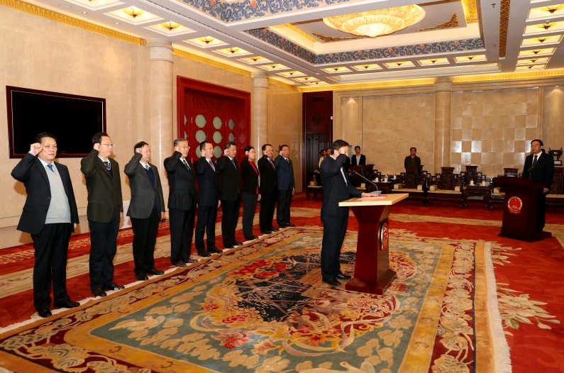 甘肅日?qǐng)?bào)蘭州訊(記者張富貴)近日,省政府組織2018年任命的國(guó)家工作人員分批舉行憲法宣誓儀式。省委常委、常務(wù)副省長(zhǎng)宋亮,省委常委、副省長(zhǎng)周學(xué)文,副省長(zhǎng)張世珍、李沛興、何偉、余建、常正國(guó)分別對(duì)分管領(lǐng)域新任命的國(guó)家工作人員憲法宣誓進(jìn)行監(jiān)誓。