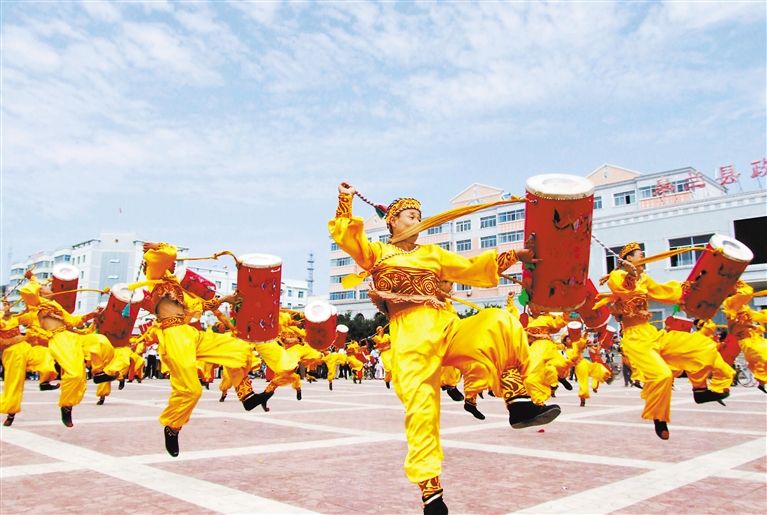 蘭州太平鼓:蘭州太平鼓是一種具有600多年歷史的傳統(tǒng)鼓舞。主要流傳于我省蘭州、酒泉、張掖等地,是深受我省群眾喜愛的民間表演形式之一,含有慶賀新年太平之意。被列入第一批國家級(jí)非物質(zhì)文化遺產(chǎn)名錄。新甘肅·甘肅日?qǐng)?bào)通訊員 魏周延