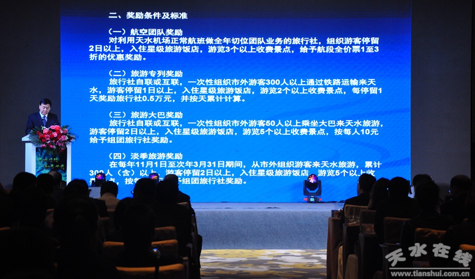 會上,甘肅演藝集團和陜西演藝集團簽訂了兩省演藝集團戰(zhàn)略合作框架協(xié)議,天水市有關(guān)負責人發(fā)布了《鼓勵旅行社引客游天水獎勵的實施意見(試行)》等天水旅游優(yōu)惠政策。