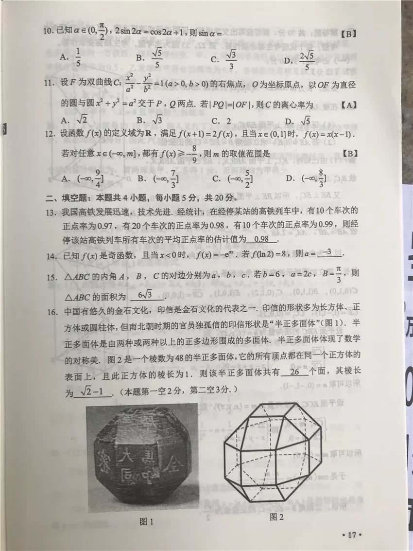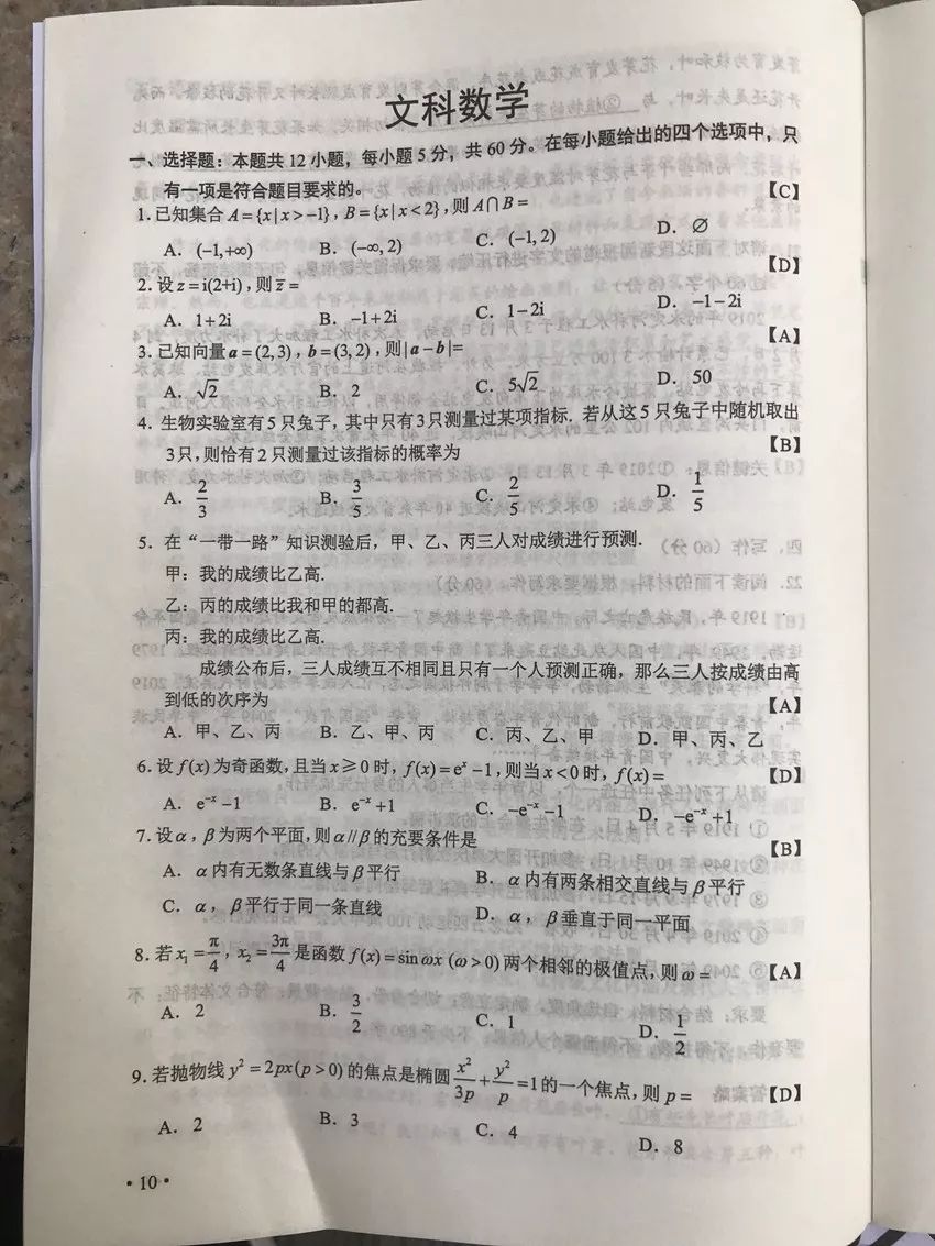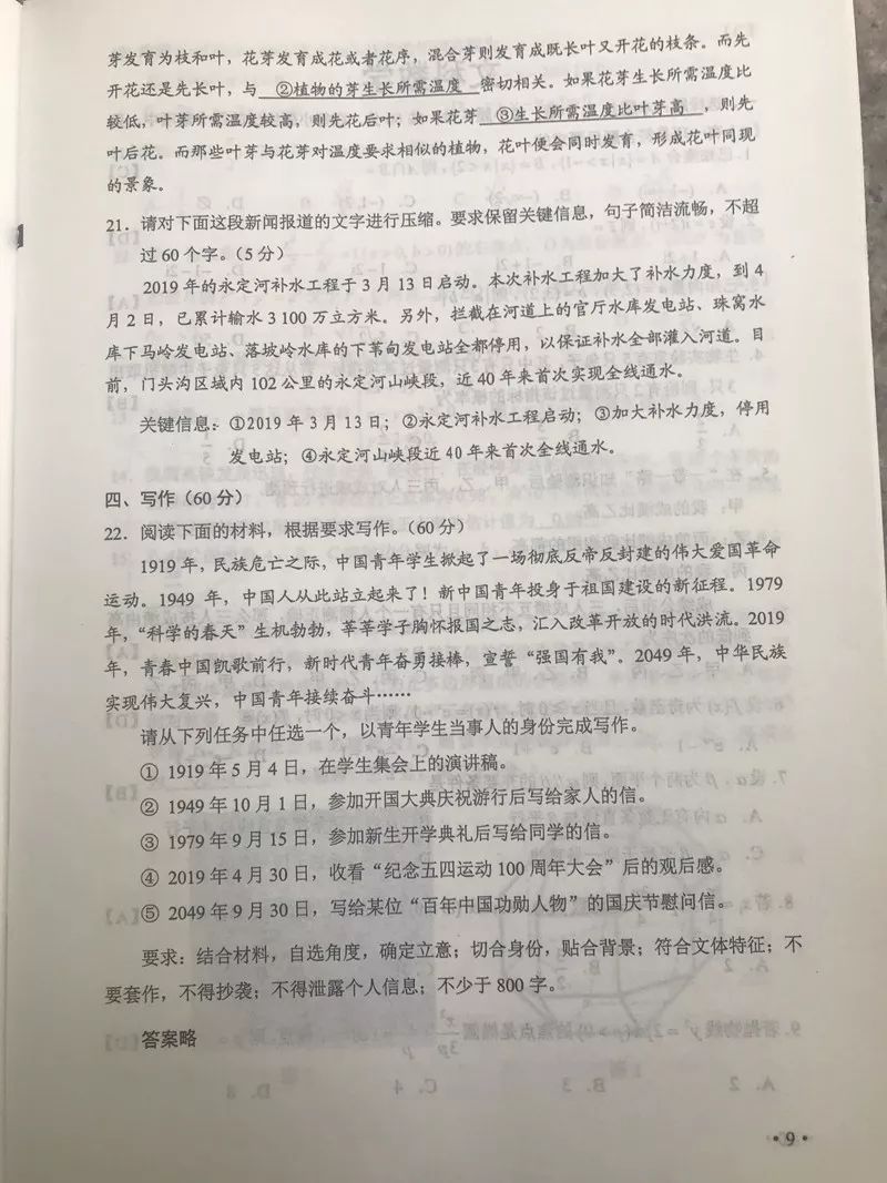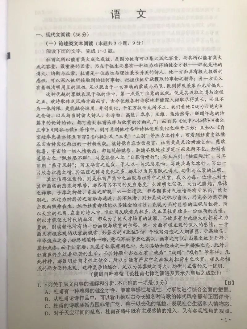 今年甘肅高考試卷真題及答案