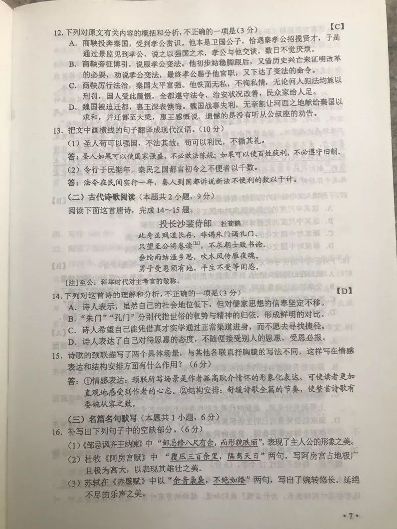 語文真題及答案