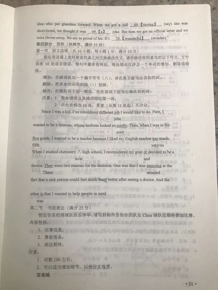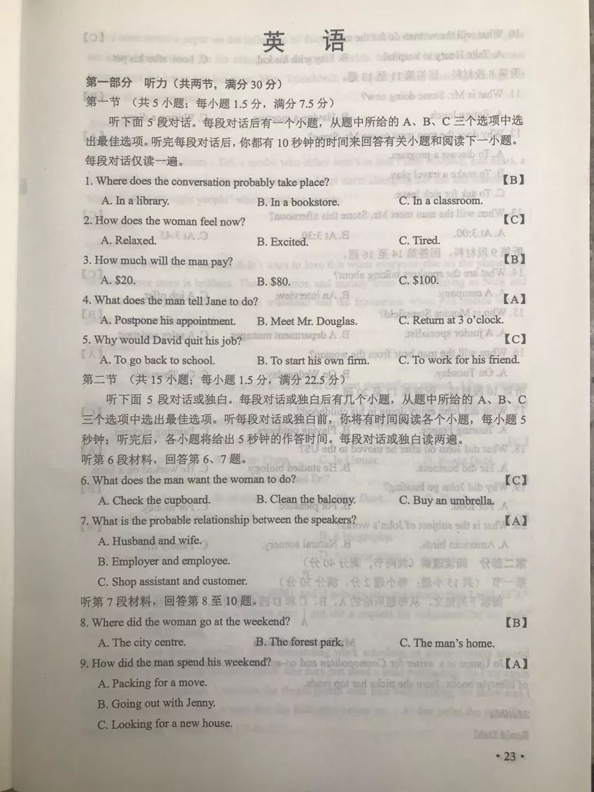 英語真題及答案