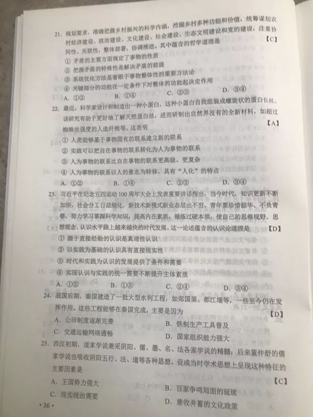 文科綜合真題及答案