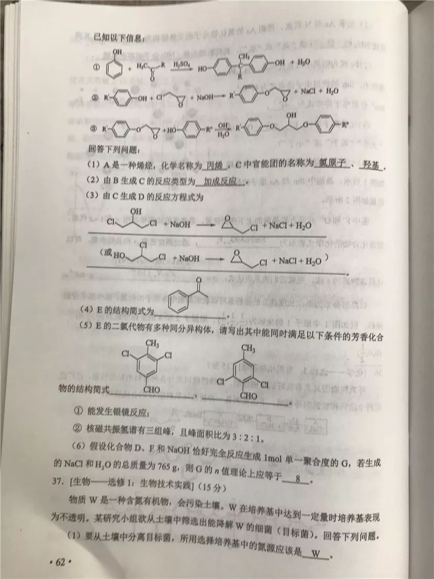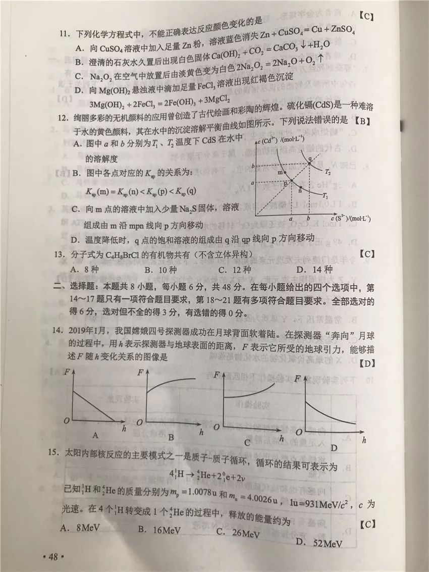 理科綜合真題及答案