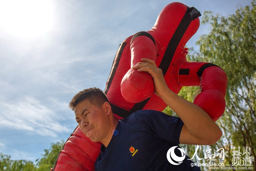 人民網(wǎng)蘭州7月17日電(王文嘉)7月16日,甘肅張掖最高氣溫達35℃,甘肅省森林消防總隊張掖市支隊指戰(zhàn)員戰(zhàn)高溫、斗酷暑,在熱浪翻滾的訓練場上開展多樣化體能科目訓練,磨煉指戰(zhàn)員意志、耐力和心理承受能力。