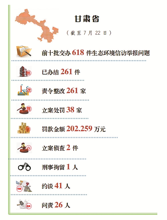 甘肅日報(bào)蘭州訊(新甘肅·甘肅日報(bào)記者文潔)7月24日,中央第五生態(tài)環(huán)境保護(hù)督察組向甘肅省移交了第十二批生態(tài)環(huán)境信訪舉報(bào)問題共83件,其中來電56件,來信27件,涉及我省13個(gè)市(州)和1個(gè)省級部門。