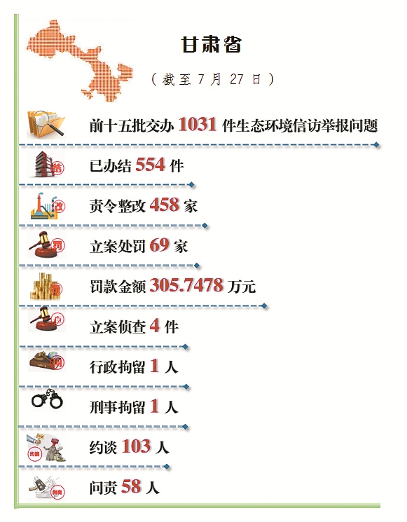 甘肅日?qǐng)?bào)蘭州訊(新甘肅·甘肅日?qǐng)?bào)記者文潔)7月29日,中央第五生態(tài)環(huán)境保護(hù)督察組向甘肅省移交了第十七批生態(tài)環(huán)境信訪舉報(bào)問(wèn)題共74件,其中來(lái)電51件,來(lái)信23件,涉及我省13個(gè)市(州)。