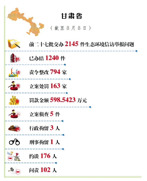 甘肅日報蘭州訊(新甘肅·甘肅日報記者文潔)8月10日,中央第五生態(tài)環(huán)境保護督察組向甘肅省移交了第二十九批生態(tài)環(huán)境信訪舉報問題共84件,其中來電44件,來信40件,涉及我省14個市(州)。