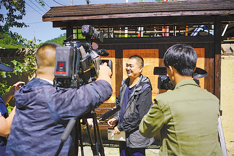 采訪團(tuán)成員接受甘肅同行采訪。本版攝影:孟捷