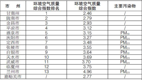 2月份,全省14個城市環(huán)境空氣質(zhì)量綜合排名由好到差分別為:甘南、隴南、金昌、平?jīng)、酒泉、慶陽、定西、張掖、白銀、天水、武威、臨夏、蘭州。(嘉峪關(guān)市2月份沙塵影響天數(shù)大于等于9天,不參與全省2月份空氣質(zhì)量排名。)