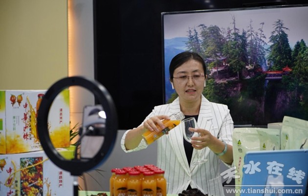 定西市漳縣縣委常委、統(tǒng)戰(zhàn)部部長(zhǎng)趙萍,向網(wǎng)友力推貴清山、遮陽(yáng)山等美景。她帶進(jìn)直播間的艾康沙棘果汁,讓粉絲們?cè)谄聊簧席偪窳粞浴跋胍保?分鐘的時(shí)間狂售3864瓶。