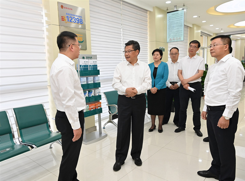 在蘭州市城市供水集團城關(guān)營業(yè)服務(wù)大廳和國家電網(wǎng)蘭州西口供電營業(yè)廳,任振鶴詳細了解國慶期間城市供水供電、服務(wù)保障情況。他指出,供水供電是經(jīng)濟運行和社會發(fā)展的重要保障,直接關(guān)系社會公眾利益和人民群眾生活質(zhì)量。要牢固樹立“群眾過節(jié)、保障過關(guān)”的意識,以更加充分的準備、更加完善的預(yù)案、更加優(yōu)質(zhì)的服務(wù),全力做好基本民生需求供給,提高出水水質(zhì),強化電網(wǎng)維護,用辛勤付出滋潤、點亮群眾節(jié)日的幸福生活。要充分發(fā)揮我省風(fēng)光資源豐富、新能源發(fā)電出力占比高的優(yōu)勢,科學(xué)精準調(diào)度,壓實保供責(zé)任,多措并舉穩(wěn)定發(fā)電能力,合理有序削峰填谷,確保電力供應(yīng)穩(wěn)定。