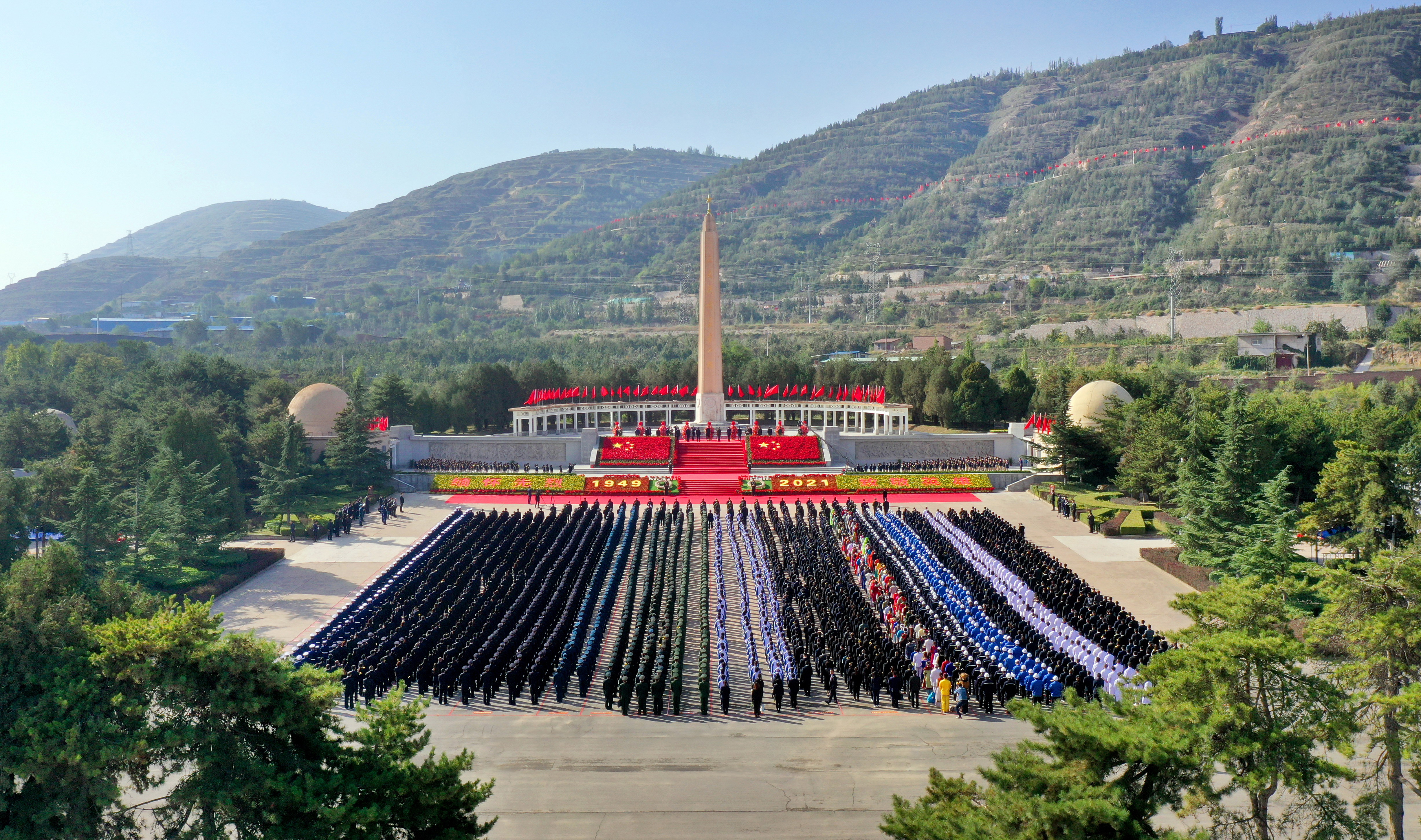 蘭州市烈士陵園松柏掩映,莊嚴(yán)肅穆。革命烈士紀(jì)念碑巍峨聳立。烈屬、老戰(zhàn)士代表及省城各界代表等手持鮮花,面向紀(jì)念碑列隊(duì)肅立。