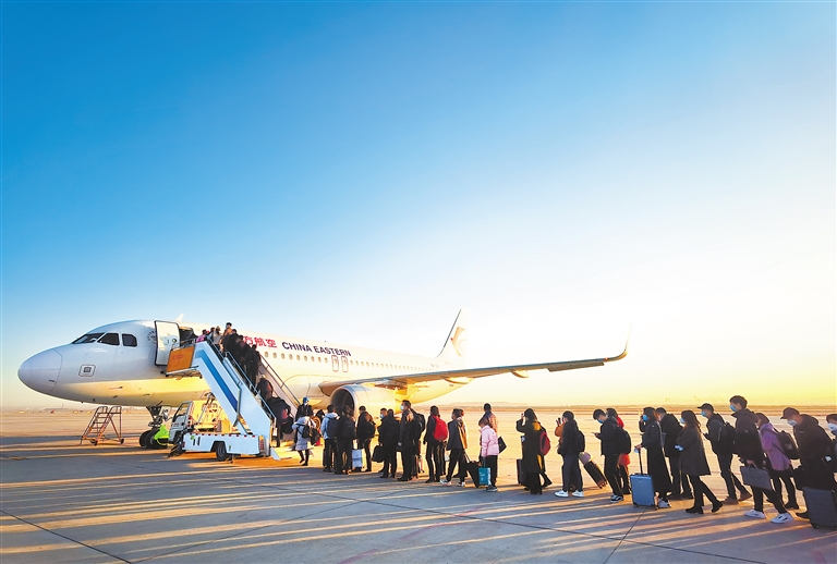 11月24日,蘭州中川國(guó)際機(jī)場(chǎng)旅客有序登機(jī)出行。在確保做好疫情防控工作的前提下,東航甘肅分公司有序復(fù)工復(fù)產(chǎn)。新甘肅·甘肅日?qǐng)?bào)通訊員 李劍