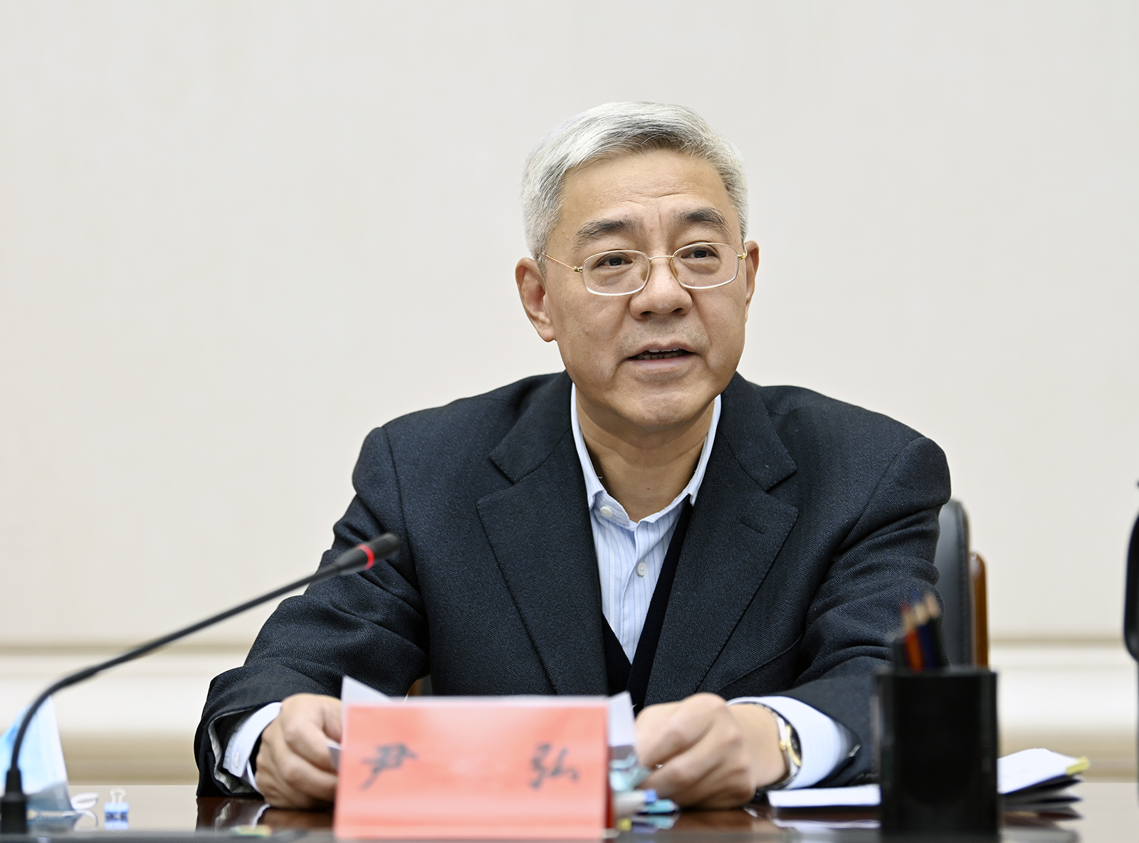 尹弘主持并講話 任振鶴通報(bào)情況 歐陽堅(jiān)出席