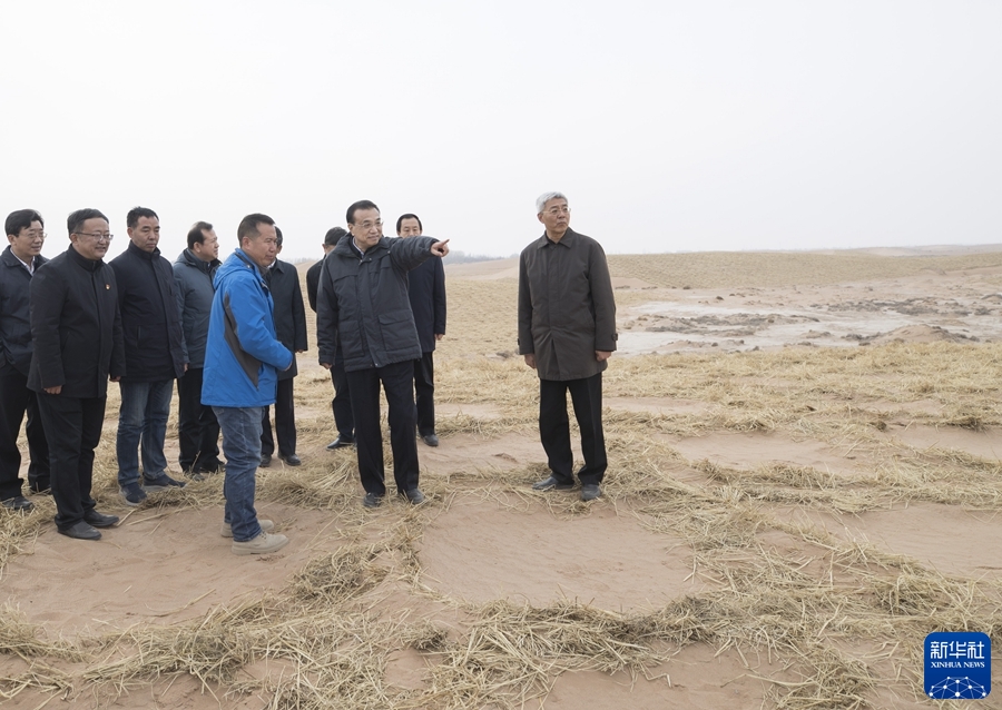 1月27日至28日,春節(jié)前夕,中共中央政治局常委、國務院總理李克強在甘肅金昌、武威考察。這是1月27日,李克強在武威市民勤縣草方格固沙點聽取甘肅防沙治沙工作匯報。新華社記者 王曄 攝