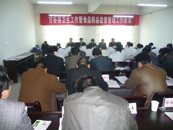3月26日下午,甘谷縣在縣衛(wèi)生局五樓會(huì)議室召開全縣衛(wèi)生工作暨食品藥品監(jiān)督管理工作會(huì)議,縣委常委、宣傳部部長(zhǎng)董珺,縣人大副主任韓金鼎,副縣長(zhǎng)潘慧琴出席會(huì)議,縣直醫(yī)療衛(wèi)生單位負(fù)責(zé)人、各鄉(xiāng)鎮(zhèn)衛(wèi)生院院長(zhǎng)、縣衛(wèi)生局全體干部、縣食品安全委員會(huì)成員單位負(fù)責(zé)人、各鄉(xiāng)鎮(zhèn)分管副鄉(xiāng)鎮(zhèn)長(zhǎng)、部分藥品經(jīng)營(yíng)企業(yè)負(fù)責(zé)人、民營(yíng)醫(yī)院院長(zhǎng)共計(jì)90余人參加會(huì)議。