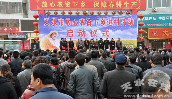 3月14日,2011年天水市放心農(nóng)資下鄉(xiāng)進村活動啟動儀式在甘谷縣隆重舉行,今年農(nóng)資打假護春耕行動以“放心農(nóng)資下鄉(xiāng),保障春耕生產(chǎn)”為主題,目的在于促進全市優(yōu)質(zhì)農(nóng)資安全供應,營造農(nóng)資打假濃厚氛圍,切實維護農(nóng)民群眾權益,保障春耕生產(chǎn)的順利開展。